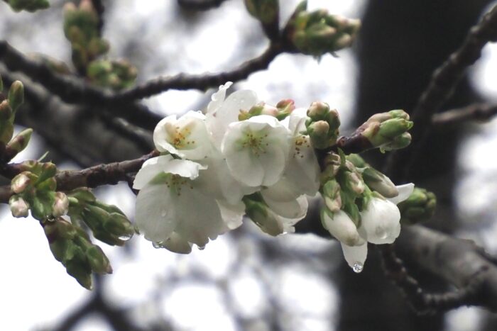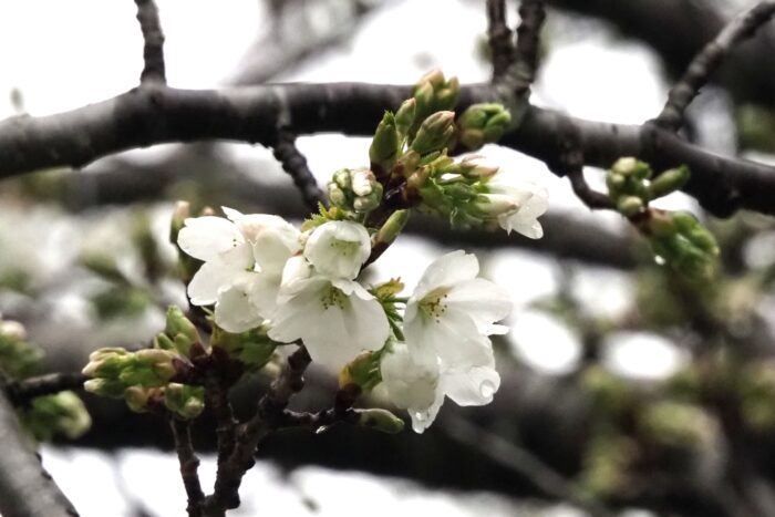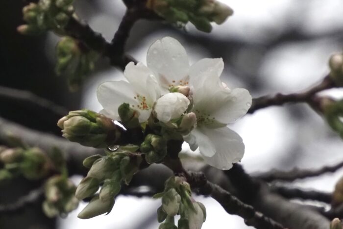 雨に濡れながら、桜が静かに咲き始めました。@清龍寺公園