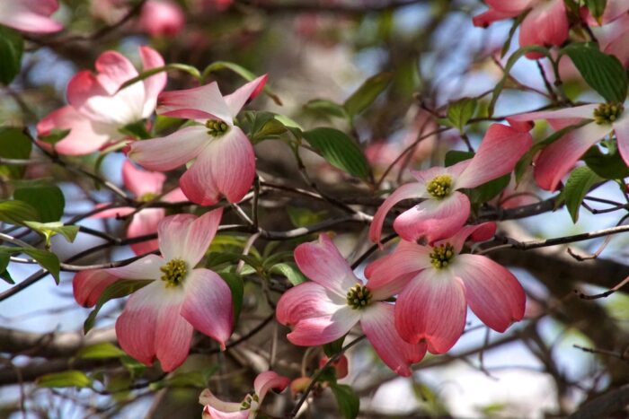 ハナミズキ、空に向かって咲く花びらが、春の終わりを名残惜しむように。
