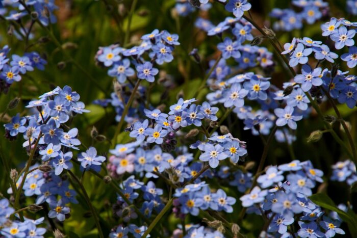 ワスレナグサ、小さな青い花が寄り添うように咲き、やさしい春の彩りを添えています。