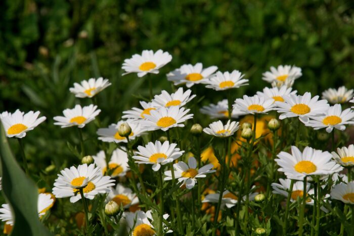 マーガレット、白い花が一面に広がり、春のやわらかな光を感じさせてくれます。